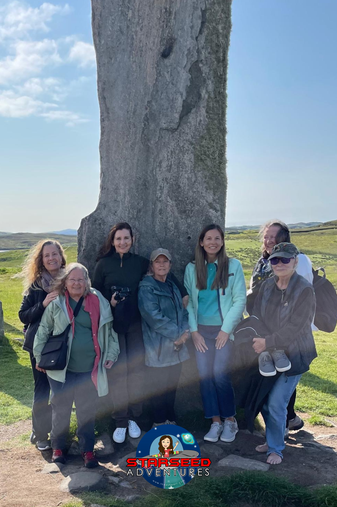 One starseed hadn’t removed her shoes and struggled with her feet hurting from the powerful current moving through her. Four described feeling motion beneath them—figure-eight patterns, vertical and horizontal. Another described a slow, rolling wave. The wave sensation was reported both within the circle and along the southern avenue, where the energy felt even stronger. One traveler compared it to the wave she’d felt during our Starseed Egypt Adventure (2022) at the Temple of Isis in Aswan. The Callanish wave, she said, was subtler. Yet upon touching the stone and self-quieting in reverence, she felt a hum, like Earth’s engine in neutral: soft crescendos, like a buzzing bee coursing through her body.