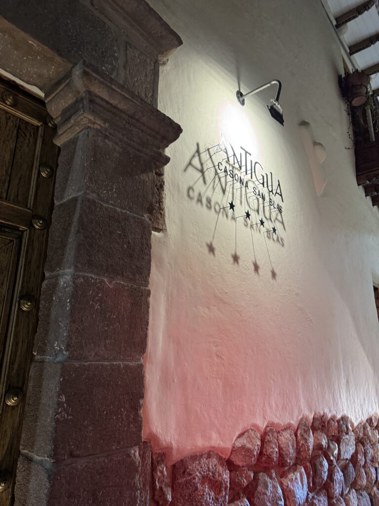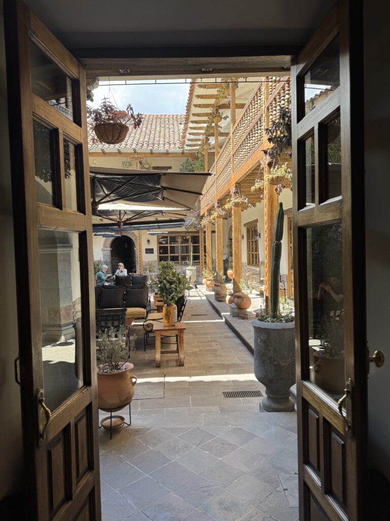 Our arrival hotel, Antigua Casona, nestled in the artistic San Blas neighborhood, was personally chosen as a thank-you gesture to our Starseed clients for a decade of shared adventures. This 4-star gem radiates creative Peruvian charm, with handwoven textiles, carved wood accents, and a breakfast buffet that’s both fresh and welcoming. After an 8 a.m. massage that quite literally changed my world, I settled in at the hotel’s in-house restaurant, ready to indulge in a made-to-order breakfast. Though their freshly brewed coffee from Café Orígenes was tempting, I stuck with water to maintain hydration at Cusco’s high altitude—approximately 11,152 feet (3,399 meters) above sea level. I ordered a build-your-own oatmeal: blueberries, bananas, toasted pecans or almonds, honey or agave, chia, and pollen.