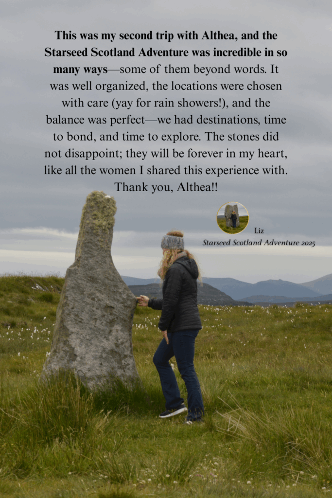 My passion for soul adventure starts with a fantastic itinerary that provides opportunities for expanded consciousness and soul growth. Starseed Scotland Adventure explores the Ancient landscape and Stone temples of Callanish on the Isle of Lewis. Subscribe to my newsletter for priority access to Starseed Adventures and the first opportunity to join.
