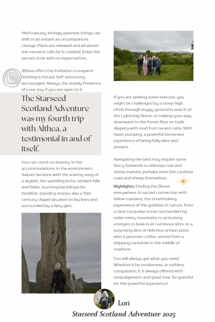 Hi, I’m your host, Althea — and this is my very first testimonial after ten wondrous years of guiding Starseed Adventures.